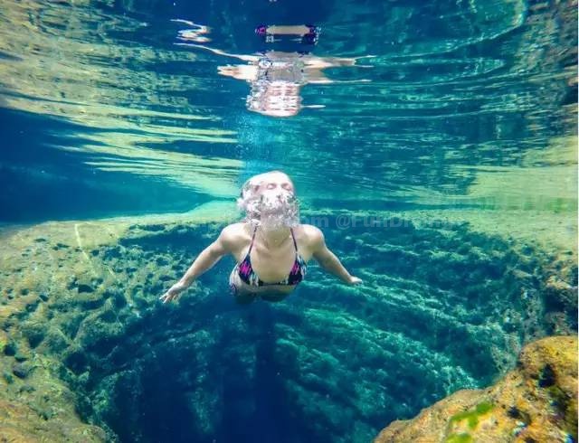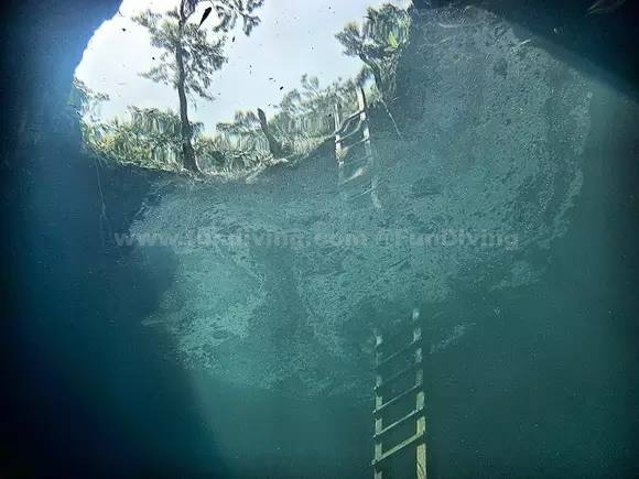 此处的水异常清澈,潜水者甚至看起来像是漂浮在空中而非水中。这片水域有着古老历史,蕴藏着许多化石,但是水下通道繁多,像迷宫一样,因而增加了其危险程度。