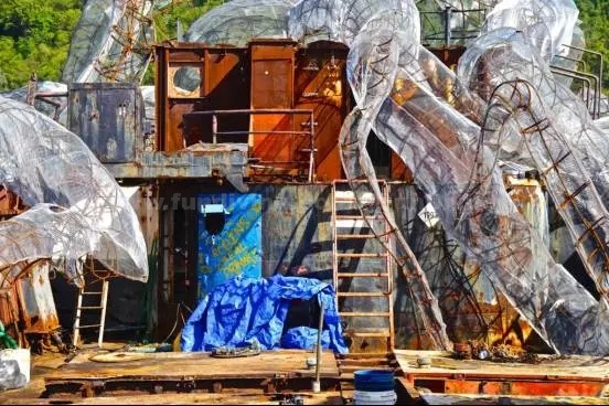 这两天同样在这片群岛,他把其中 Virgin Gorda 南部海域上的一艘二战时期战舰 Kodiak Queen 号沉入海底,打造成了一个人造海洋生态系统,命名为 B.V.I Art Reef,并在船上放了一个 80 英尺长的海怪雕塑,成为这个世界级潜点的一部分。
