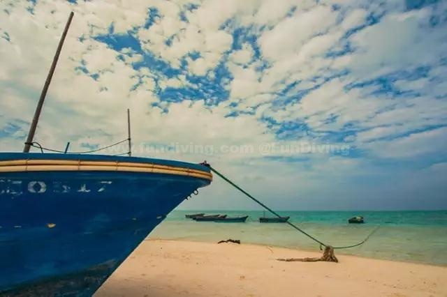 岛上全是细软的白色海沙,混着被吹打碎的红珊瑚粉末,水清沙幼。而这里的海水像钻石一样晶莹透亮,仅凭肉眼便能看到海底的景象。