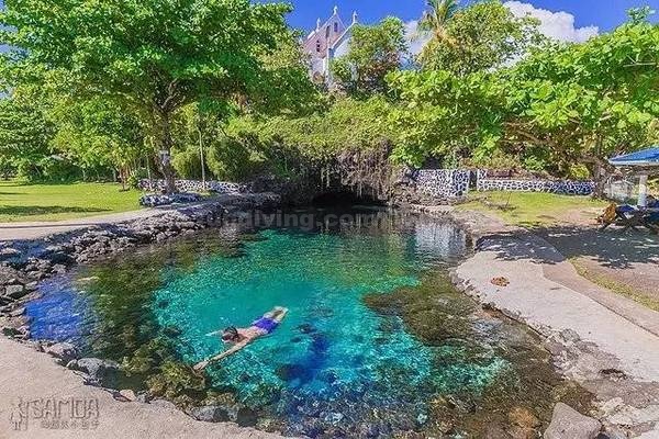 在炎热的萨摩亚,看到这么湛清碧绿的池水,跳进池里游个泳,瞬间一阵清凉袭击全身!脑海里只有一种感觉:舒坦!