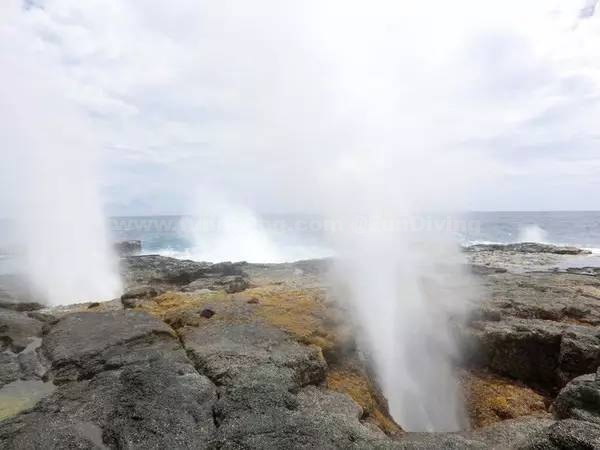 在这里最大的一个洞口,据说最流行的方式是在洞口放上一个椰子,看巨大的喷射力能把椰子推到多高。反正在这种巨大的威力作用下,小小的椰子就像一枚炮弹一样BIU的一下飞出去了!