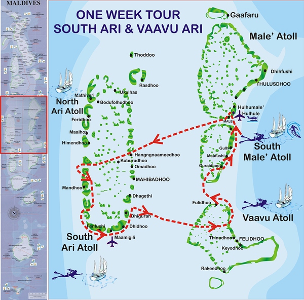 而经典的马尔代夫船宿路线,就是7天时间的,South ARI——VAAVU ARI行程。
